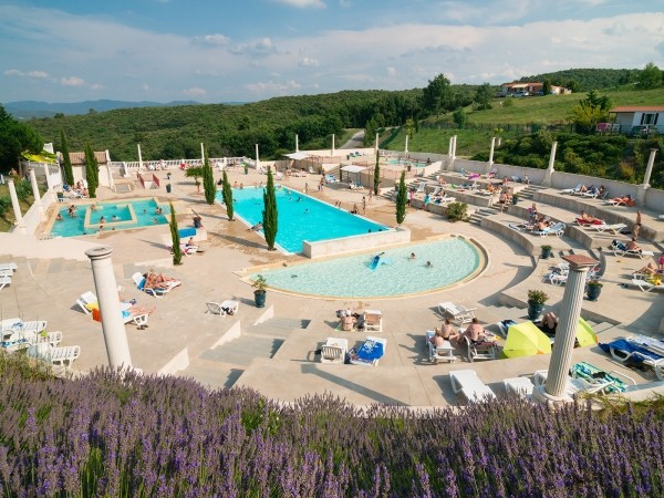 En el camping Domaine d’Arnauteille encontrará un espacio de baño con 5 piscinas, una de ellas cubierta, un río a contracorriente, toboganes acuáticos, baños de burbujas y una zona de baño infantil. Disfrute de este marco único con decoración grecorromana durante sus vacaciones de relax.