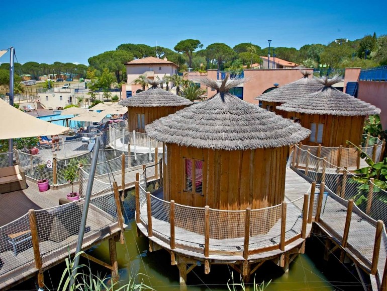 ¡Descubra el espacio acuático climatizado del Yelloh! Village Les Tournels! Su lago artificial, sus toboganes, sus jacuzzis y su piscina infantil harán las delicias de grandes y pequeños. El camping disfruta de una situación ideal a solo 1,5 km de la bonita playa de Pampelonne.