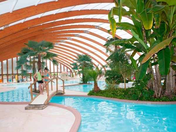 Disfrute de sus alojamientos de alta gama y de los placeres del agua: el camping cuenta con una zona acuática al aire libre y cubierta de 1000 m² con tobogán y jacuzzi... ¡Imposible resistirse! Y por las noches, viva agradables momentos compartidos en el restaurante del camping y participe en animadas veladas.